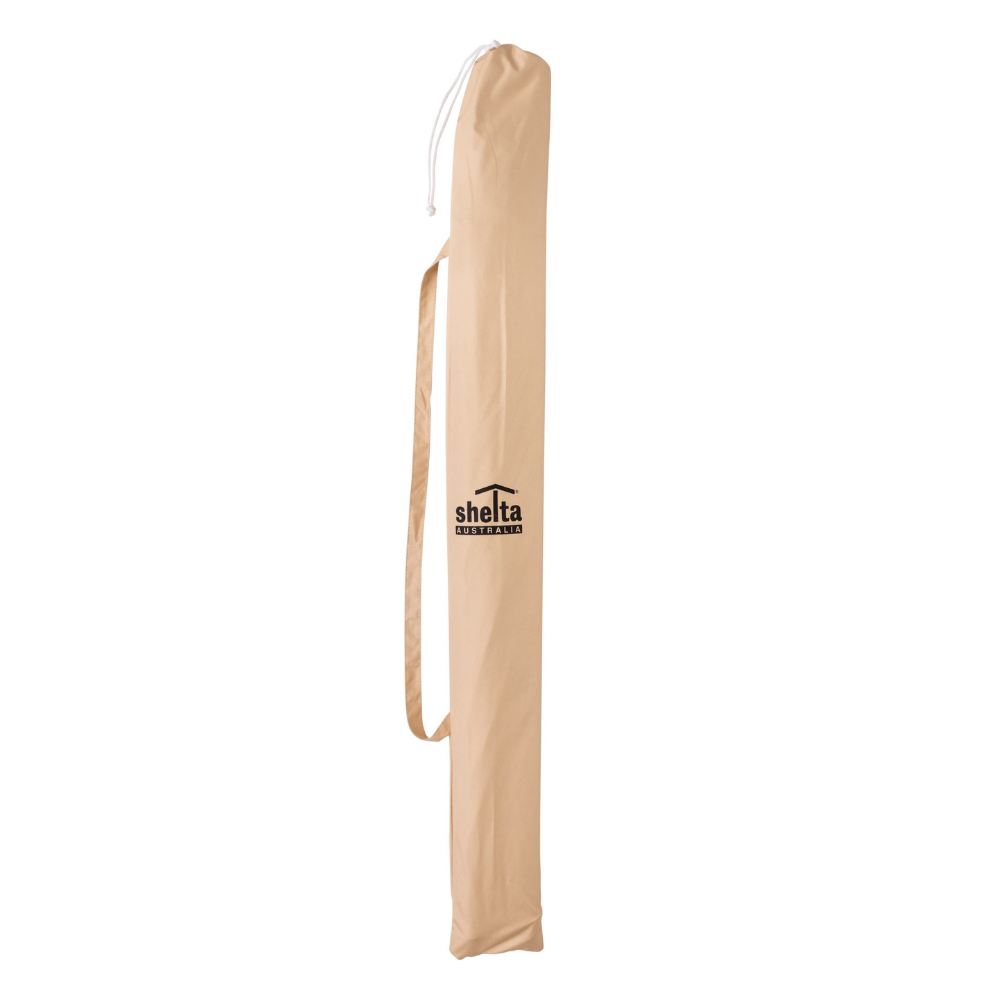 Noosa features a large 180cm diameter canopy and easy to use swivel tilt function. Noosa also features a corrosion resistant 32mm diameter aluminium pole with adjustable height and 8 fibreglass ribs to support the canopy.